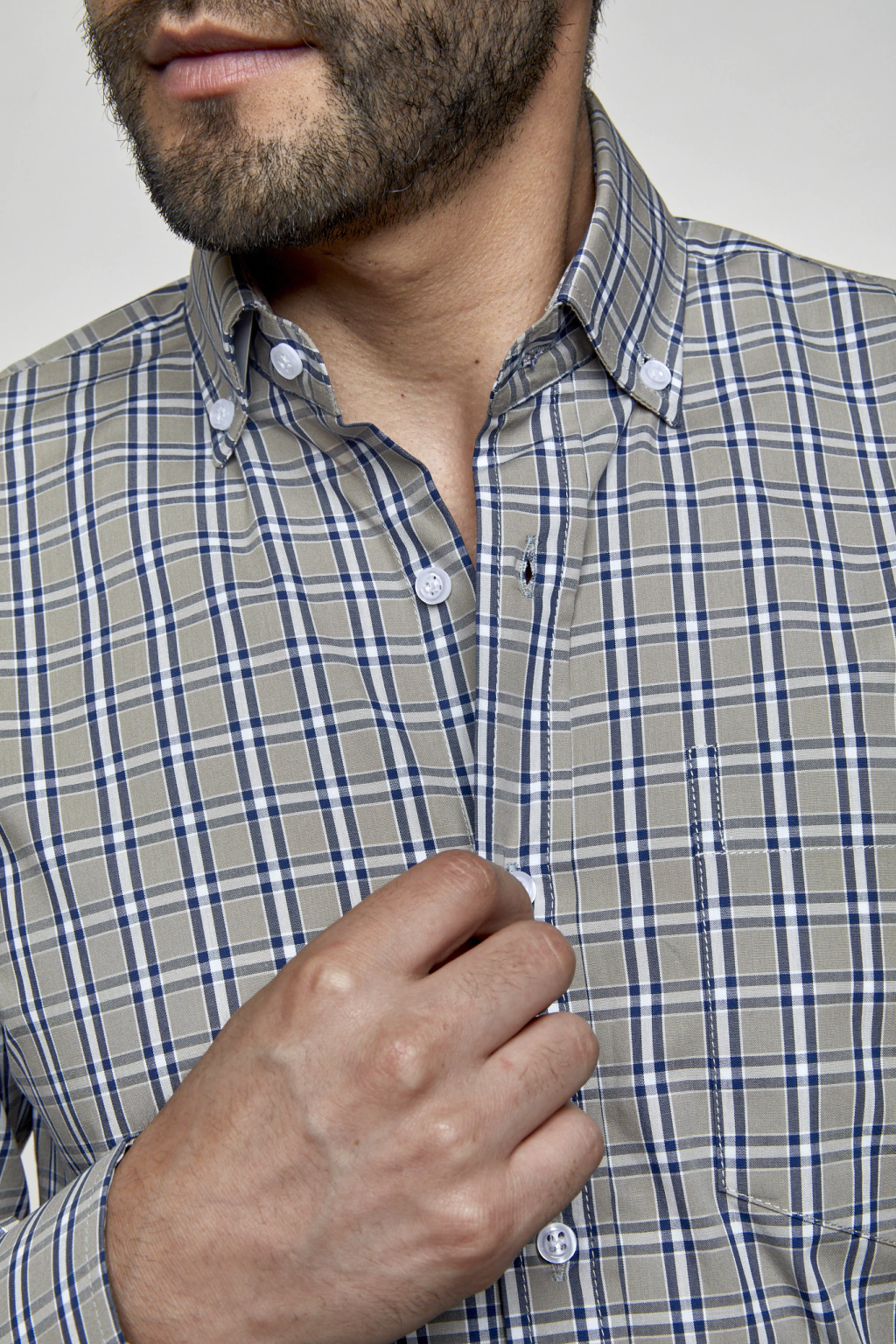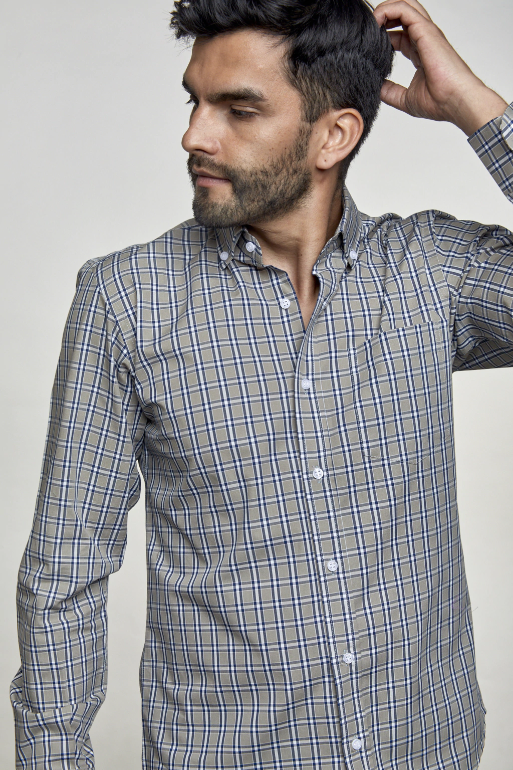 • Camisa Sport manga larga a cuadros con bolsillo.