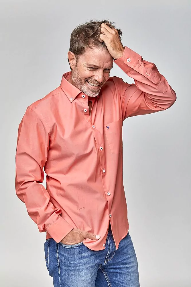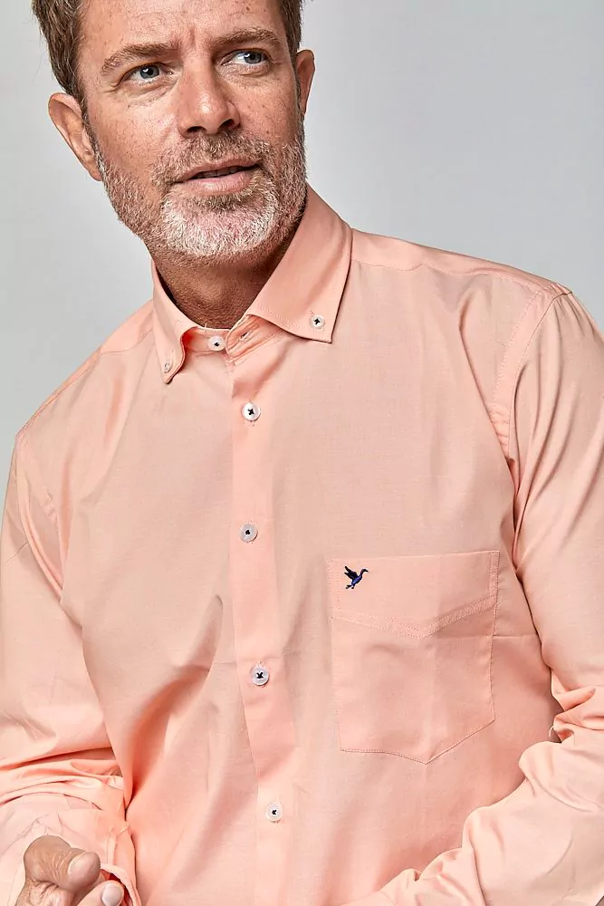 • Camisa Sport manga larga lisa, con isologo bordado en el bolsillo y botón en cuello.