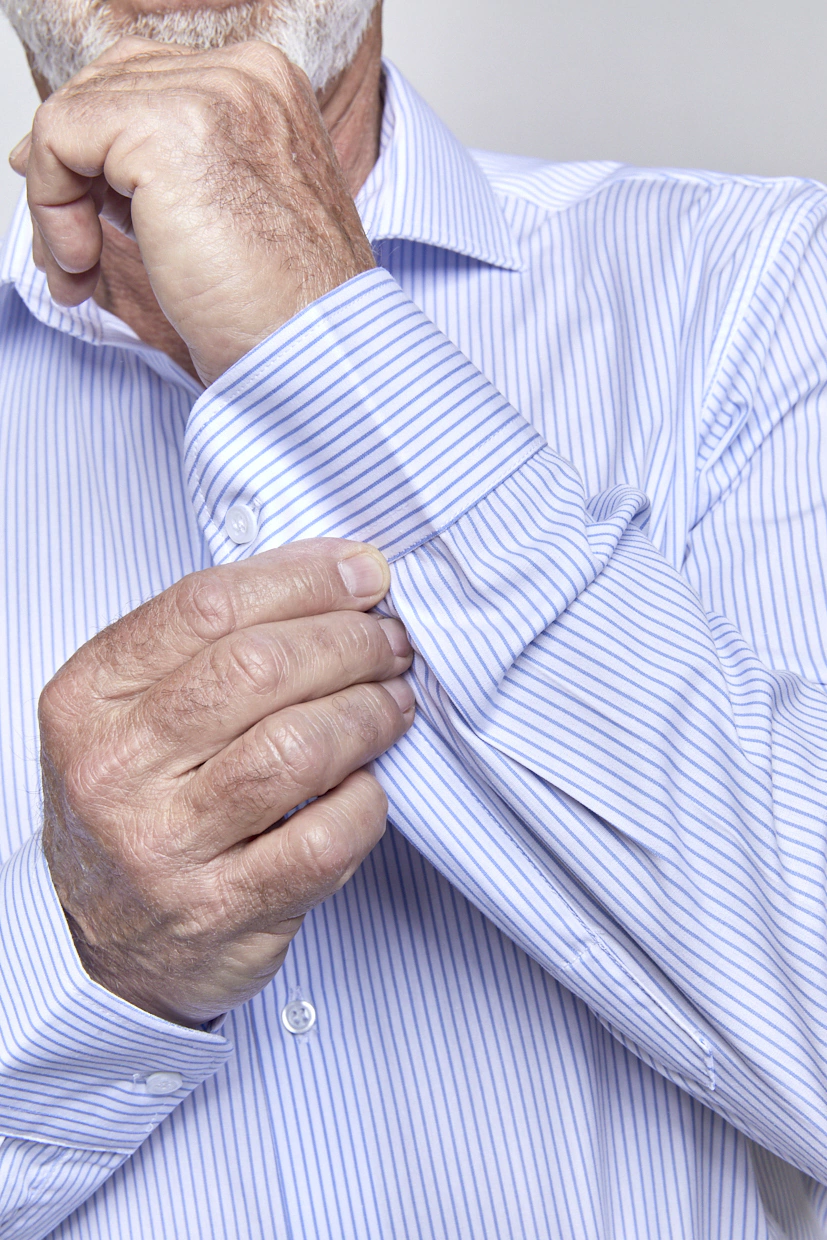• Camisa de vestir rayada con doble botón en puños y pinzas en la espalda para mayor amplitud.